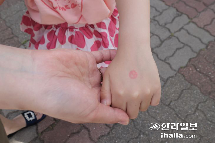 | 엄마를 따라 생애 처음으로 투표소를 찾은 6살 문지원 양이 손등에 찍은 도장을 보여주고 있다. 김도영기자 |