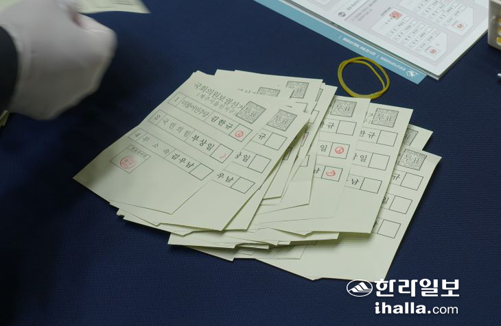 | 국회의원 보궐선거 제주시을 선거구 무효 투표용지. 김도영기자 |