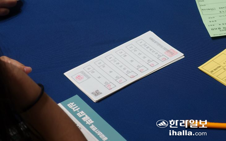 | 제주도교육의원 제주시 동부선거구 투표용지가 기표되지 않고 텅 비어 있다. 김도영기자 |