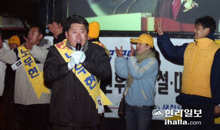 ▶뚝심 청년, 정치에 뛰어들다=20대 후반이었던 오영훈 당선인은 민주화 운동을 이끈 고(故) 김근태 의장과 인연을 맺어 새정치국민회의 창당발기인으로 참여하면서 현실정치에 뛰어들게 된다.
