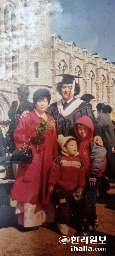 | 고려대학교 석사를 졸업하고 가족들과 기념촬영한 당선인. |