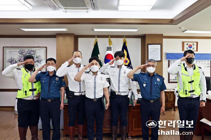 고기철 제주경찰청장은 2일 제주청 2층 한라상방에서 국가유공자 에스코트를 담당하는 경찰관들에게 포상을 수여했다.