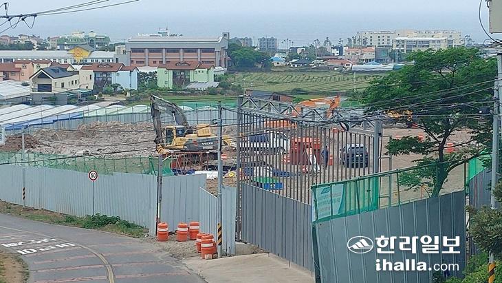 해당 공사는 어린이집 등 지역민들의 민원 제기에 한때 작업이 중지됐다. 먼지와 소음 차단을 위한 일부 구간 펜스 미설치 등이 그 이유였다. 하지만 제주시의 개선 명령 이후 이행이 확인되면서 지난 2일부터 공사가 재개됐다. 다만 3일 제주시가 공사장 주변 개인 주택에서 측정한 소음이 기준치(65㏈)를 초과하면서 이에 대한 행정 조치는 조만간 추가로 이뤄질 예정이다.