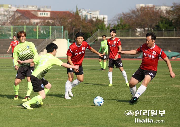 제주에서 공 좀 찬다는 사람들 모두 모여 자웅을 겨룬다.