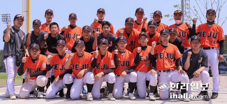 19일 부산 기장 현대차 드림 볼파크에서 열린 2022 고교야구 주말리그 후반기(부산·제주권) 부산고와의 경기에서 3-0으로 완승을 거둔 제주고 야구팀.