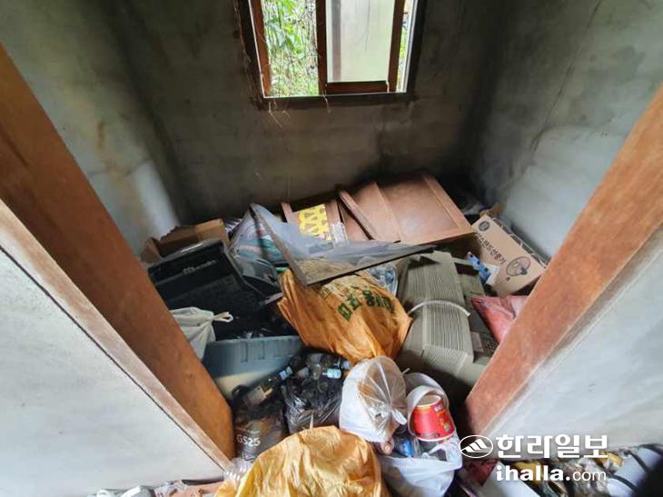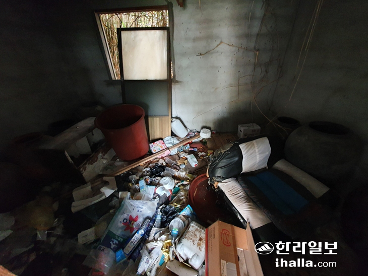 | A씨 부부가 살고 있던 폐가. 각종 생활쓰레기가 가득 쌓여 있다. |