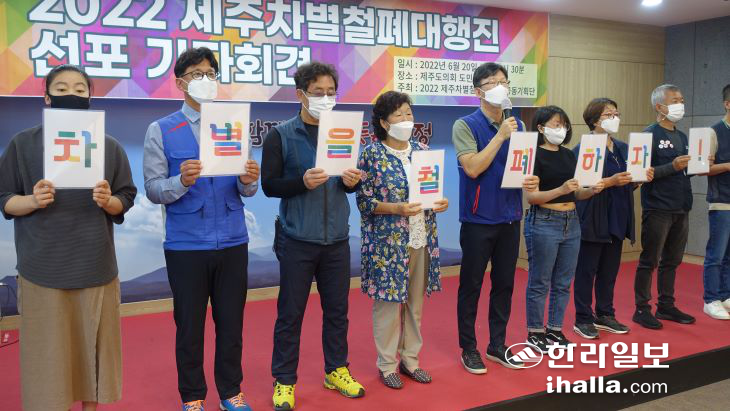 이어 "코로나 이후의 달라질 세상을 위해 어제의 차별을 끊고 내일의 평등을 향해 오늘 한 발 더 나아가자"며 "2022년 제주차별철폐대행진 공동기획단은 그 시작을 선포한다"고 했다.