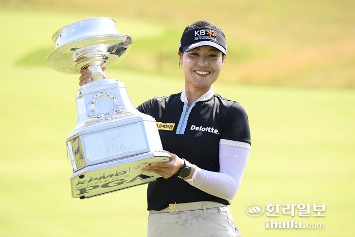 우승 트로피 든 전인지. 연합뉴스