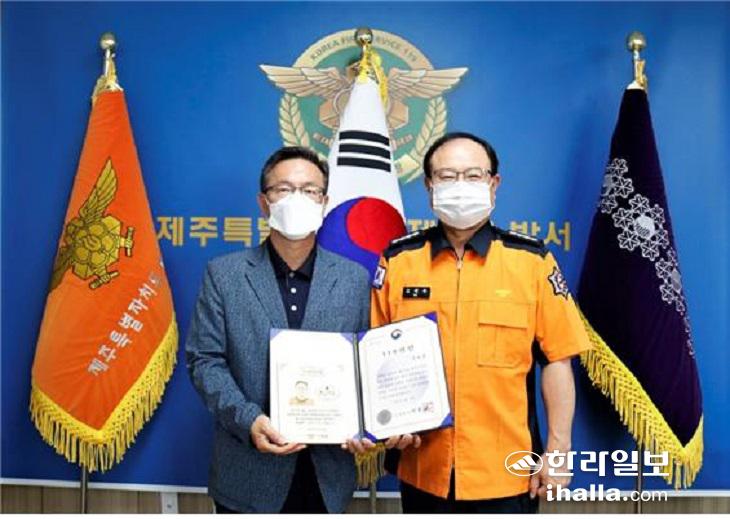 [한라일보] 지난 3월 바다에 빠진 어린이를 맨몸으로 뛰어들어 구조한 강동엽(58)씨가 '119의인상'을 수상했다.