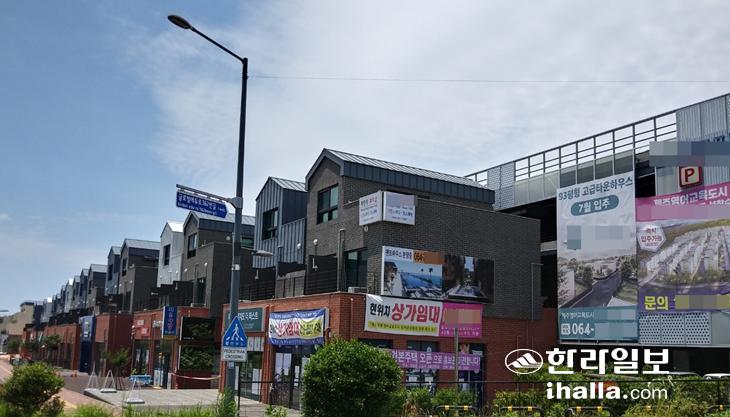 서귀포시 대정읍의 인구 증가를 이끈 요인 중 하나인 영어교육도시의 상가 지역.