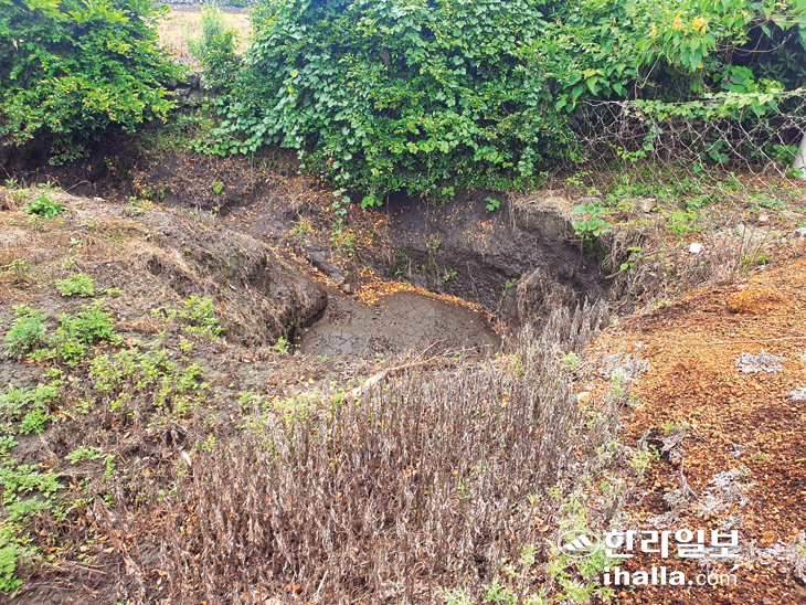 이어 "주변이 송이층이다 보니 폭우때 숨골에 가득한 빗물은 하루 정도면 모두 땅속으로 들어간다"면서 "감자와 콩 농사하고 있는데 비가 많이 내리는 날에는 밭에 물길 등이 생기면서 상당한 피해를 보는데 보험 처리 등으로 손실을 충당하고 있다"고 했다.