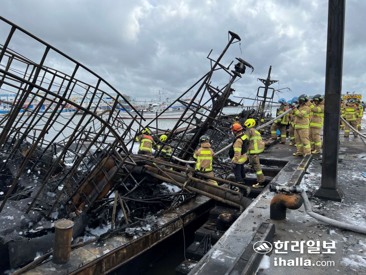 [한라일보] 3명이 중상을 입고 2명이 실종 상태인 제주 한림항 어선 화재가 8시간 57분 만에 진압됐다. 성산항에 이어 이번 화재도 '밀집 정박'으로 피해를 키웠다는 지적이다.