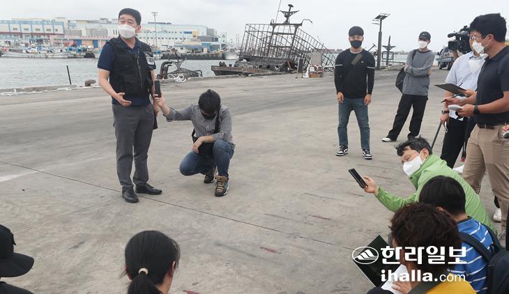 제주해양경찰서는 8일 오전 제주시 한림항에서 '어선 화재 관련 브리핑'을 진행했다.