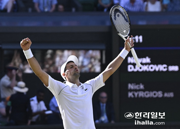 조코비치는 10일(현지시간) 영국 윔블던의 올잉글랜드클럽에서 열린 대회 마지막 날 남자 단식 결승에서 닉 키리오스(40위·호주)에게 3-1(4-6 6-3 6-4 7-6<7-3>) 역전승을 거뒀다.