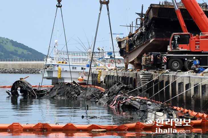 [속보] 한림항 화재 사고 선박 3척 중 1척 인양 완료 |