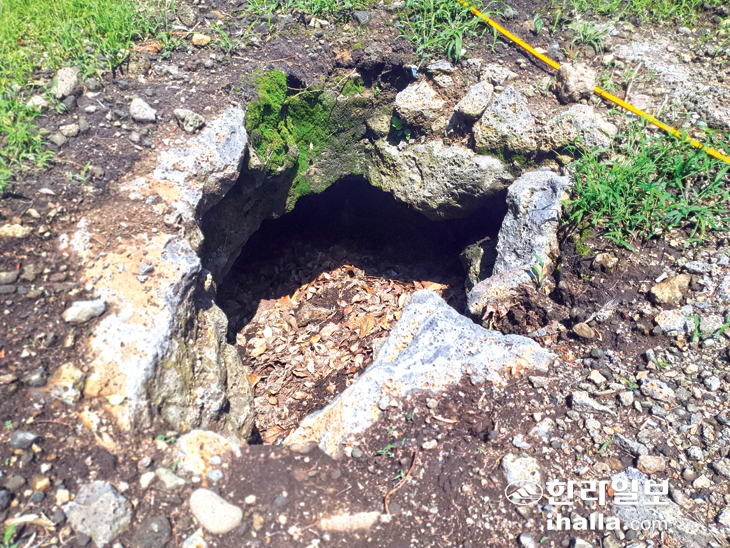 감귤원 내 용암동굴 천장 무너진 숨골 존재