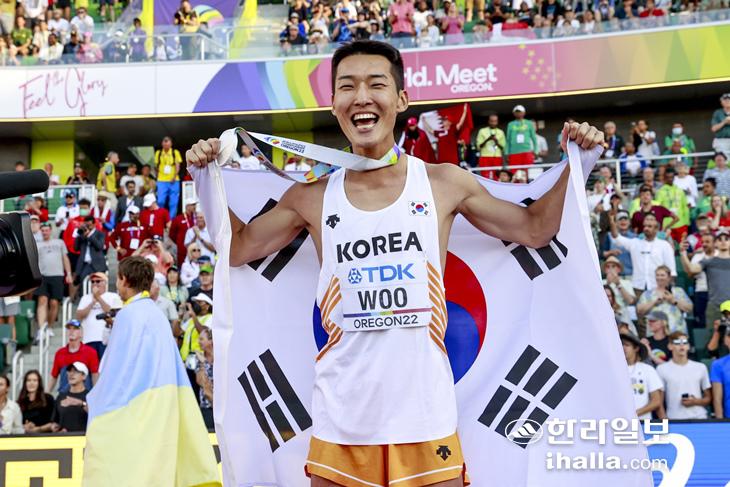 우상혁은 19일(한국시간) 미국 오리건주 유진 헤이워드 필드에서 열린 2022 세계육상선수권대회 남자 높이뛰기 결선에서 2m35를 넘어 2위를 차지했다.