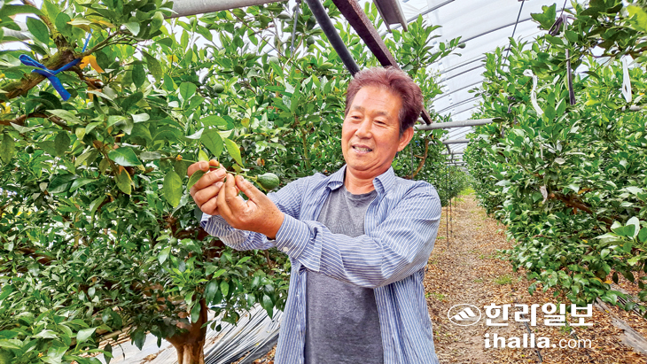 한라봉 농사를 짓는 이를 손꼽을 시절, 김씨가 한라봉으로 시선을 돌린 것은 벼농사를 짓다 고소득을 올리기 위해 전환한 멜론과 방울토마토의 연작 피해에 직면하면서다. 또 일손이 너무 많이 들어 힘겹던 차에 상대적으로 손이 덜 간다는 한라봉을 심었는데 지금 생각하면 잘한 선택이었다고 얘기했다.