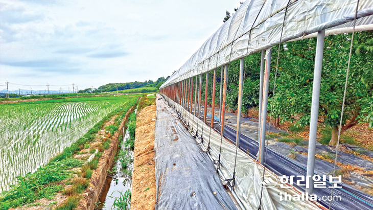 | 김철동씨의 한라봉 하우스 일대는 논농사가 대부분이다. 문미숙기자 |