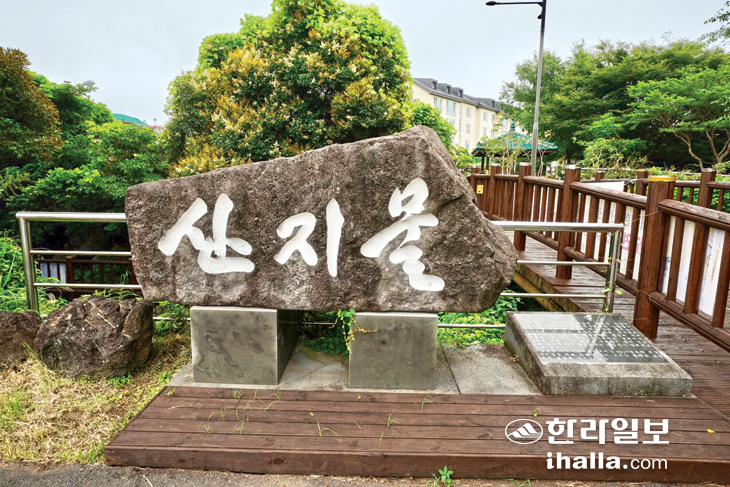 아마도 서귀포시민이 아니라면 산지물하면 제주시 도심 산지천을 떠올릴지도 모른다. 눈길을 끄는 것은 그 지명과 유래이다. 제주시 원도심에 복개하천이 복원된 산지천과 이름이 같을 뿐만 아니라 인연도 깊다.