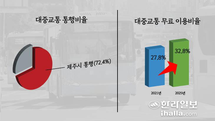 우선 대중교통 수요는 코로나19로 인한 사회적 거리두기 등 강화된 방역조치로 2020년 수요가 전년 대비 22% 감소한 뒤 회복세가 둔화되고 있는 것으로 조사됐다. 또한 대중교통은 단거리 위주로 이용하고 있으며, 제주시 통행이 전체의 72.4%를 차지하는 것으로 나타났다. 도내 고령화 추세에 따라 대중교통 무료 이용 비율이 2021년 27.8%에서 2025년 32.8%로 증가할 것으로 추산됐다.
