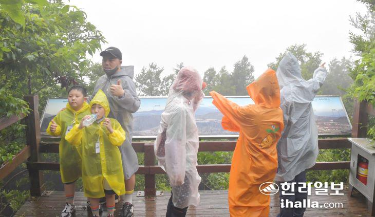 [한라일보] 제5호 태풍 '송다'의 영향으로 강한 비가 쏟아진 궂은 날씨에도 거문오름을 찾은 탐방객들의 열정은 꺾이지 않았다.