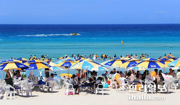 광복절 연휴 둘째날인 14일은 제주전역에 폭염특보가 발효중인 가운데 낮 최고기온이 31~36℃까지 오르는 무더위가 이어지겠다.