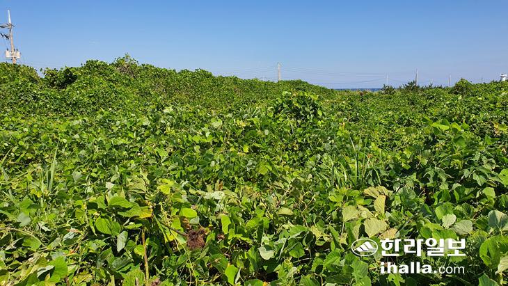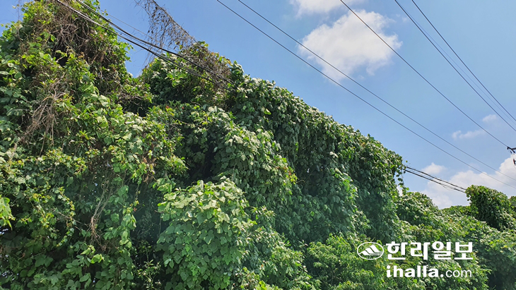[한라일보] 칡넝쿨이 제주지역 도로변 뿐만 아니라 중산간지역까지 빠르게 확산하며 수목의 생육에 지장을 주는 등 생태계를 교란시키고 있다.
