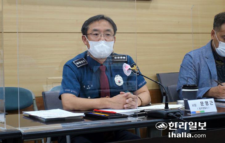 문영근 제주동부경찰서장이 17일 기자 간담회에서 지역 현안에 대한 입장을 밝히고 있다. 김도영기자