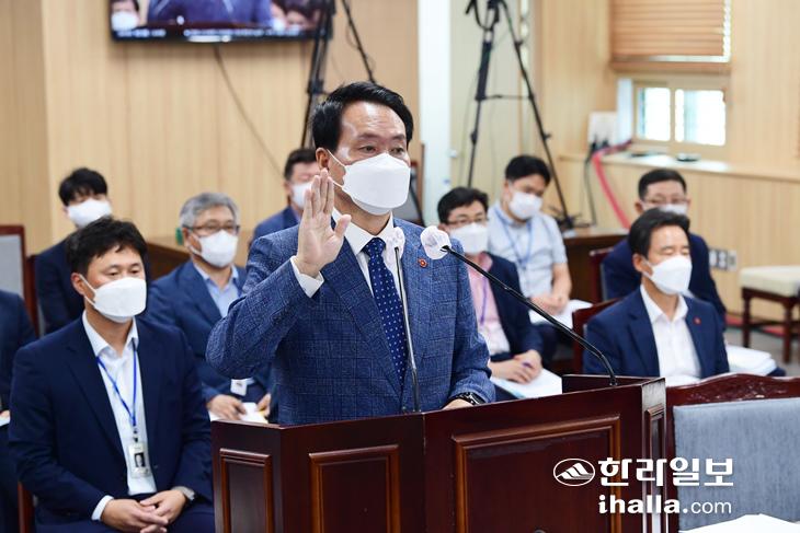 24일 인사청문회에서 선서하는 김희현 제주자치도 정무부지사 후보자.
