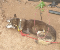 3살 말라뮤트 믹스견으로 추정되는 이 개는 몸에 화살을 관통당한 채 26일 오전 8시29분쯤 청수리 마을회관 인근 도로에서 구조됐다.
