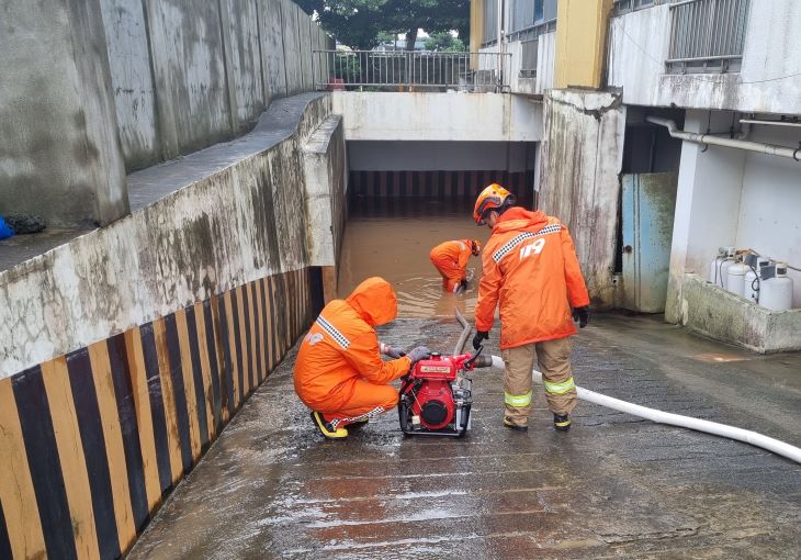 소방당국은 펌프차량을 출동시켜 해당 주택에 대한 배수 지원을 실시했다.
