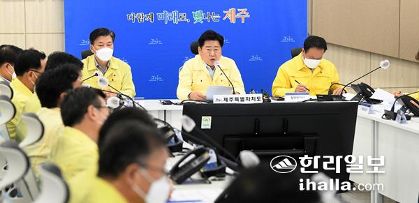 제주도는 이날 오전 9시 재난안전대책본부 상황실에서 오영훈 도지사 주재로 '제11호 태풍 한남노 북상에 따른 대책회의를 열고, 대비책을 점검했다.