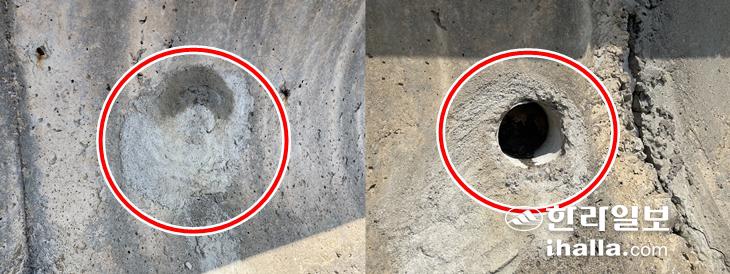 [한라일보] 제11호 태풍 '힌남노' 내습 당시 침수·통제됐던 서귀포시 대정읍 소재 해안도로의 배수구가 당시 콘크리트로 막혀 있었던 것으로 확인됐다.