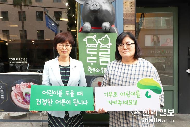 도도름 한우와흑돈 양순애 대표(사진 우측)가 초록우산 어린이재단 박정숙 본부장(사진 왼쪽)과 함께 사진촬영을 하고 있다.