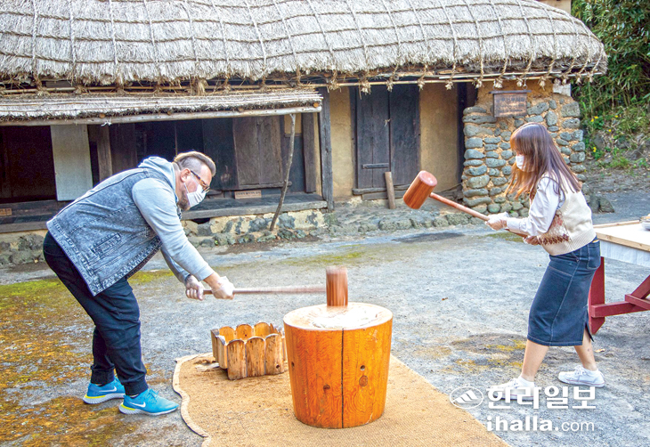 | 제주민속촌 떡메치기 체험. |
