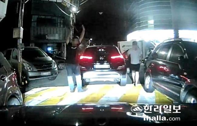 지난 7일 새벽 제주시 이도동에서 행인 3명을 치고 그대로 달아난 음주운전자가 경찰 추격 끝에 검거되는 모습.