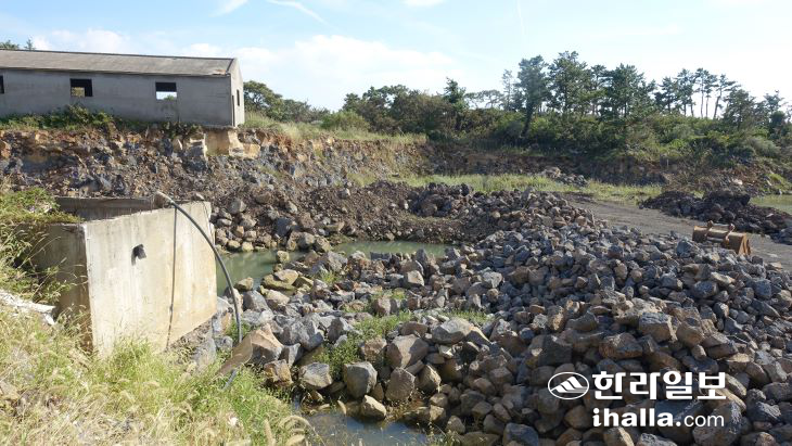 [한라일보] 무허가 절토 작업 과정에서 고인 우수로 인해 주변 농경지에 피해를 일으키고 있다는 주장이 제기됐다.
