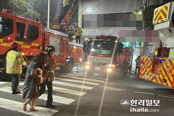 [한라일보] 제주시 용담1동 소재 지하 1층·지상 3층 건물에서 14명이 부상을 입는 화재가 발생했다.