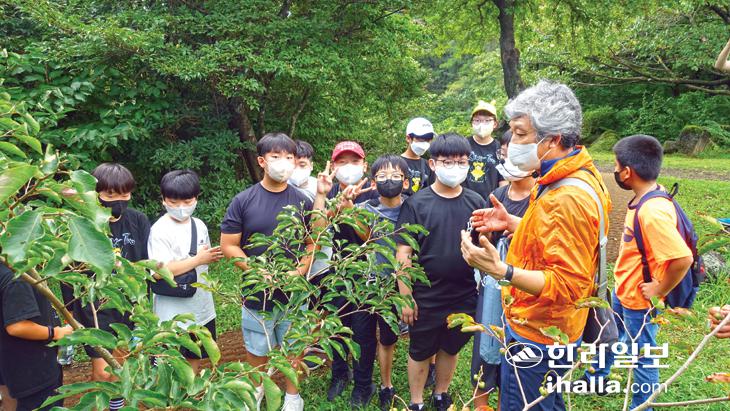 김 강사는 학생들에게 "한 그루의 나무가 살아가는 데는 나무 혼자서 사는 것이 아니라 주변에 있는 여러 생명체들과 어우러져 살고 있음을 곰솔의 모습에서 확인할 수 있다"고 설명했다.