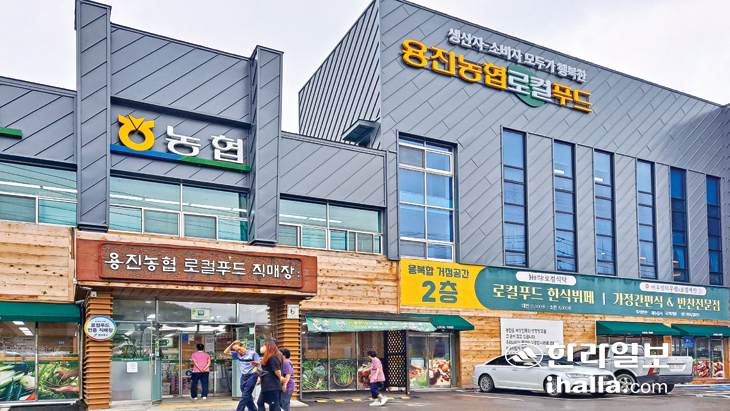 가보지 않은 길이라 대부분 반대했다던 완주군의 로컬푸드는 2012년 4월 완주군 용진농협에 국내 1호 로컬푸드 직매장 개장이라는 첫 열매를 맺었다. 개장 첫해 43억원이던 직매장 매출은 2021년 114억원으로 늘었다. 매장 설립 전 몇달간 임시매장을 열어 70여농가가 생산하는 50여품목을 팔던 데서 현재 800여 참여농가, 판매 품목은 700가지로 다양해졌다. 용진농협은 로컬푸드직매장과는 별도로 2층에 하나로마트를 운영하는데 1차 제품을 제외한 일반 가공품만 취급한다. 지난해 매출은 24억원으로 로컬푸드 직매장의 21% 수준이다.