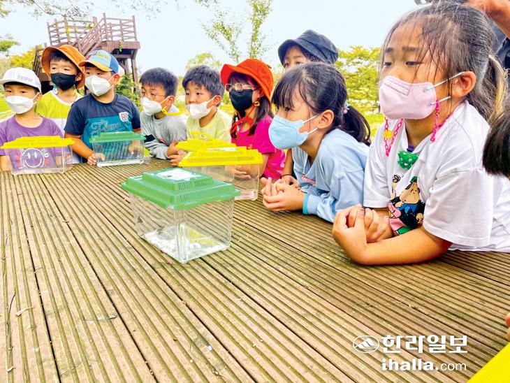 [한라일보] 게임이나 어제 먹었던 과자를 주제로 왁자지껄 떠들던 아이들이 곤충 사냥꾼으로 돌변했다. 징그럽다며 처음에는 질색팔색 비명을 질렀지만, 시간이 지나서는 곤충이 다칠까봐 조심스럽게 손으로 감싸기도 한다. 자연이 아이들에게 교과서가 돼준 순간이다.