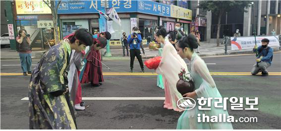 행렬 중간 중간 탐라개국신화를 활용한 고·양·부 삼신인의 등장과 벽랑삼공주와의 혼례 특별 퍼포먼스는 도민과 관광객의 뜨거운 호응을 얻었다.