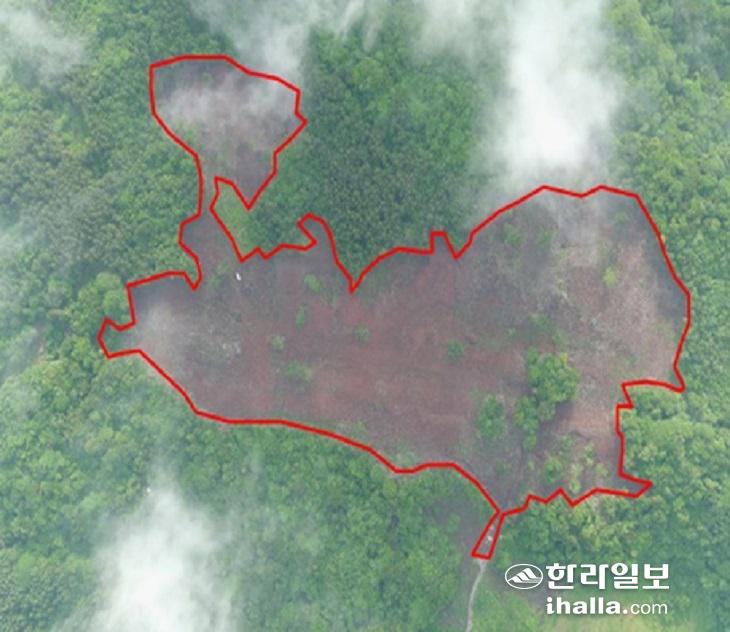 훼손된 거문오름 일대. 제주도 자치경찰단 항공사진.