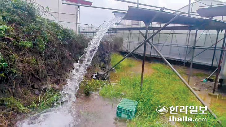 만감류 비닐하우스 인근에 있는 또 다른 숨골에도 빗물이 끊임없이 들어갔다.