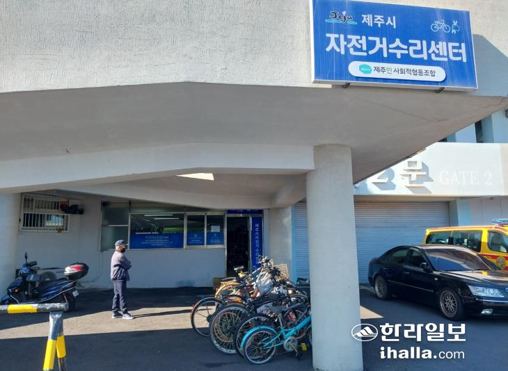 제주시가 도내 한 사회적협동조합에 위탁 운영하는 제주시자전거수리센터. 제주시 오라1동 제주종합경기장에 있는 이곳에선 무단 방치 자전거를 수거하는 업무도 이뤄지고 있다.