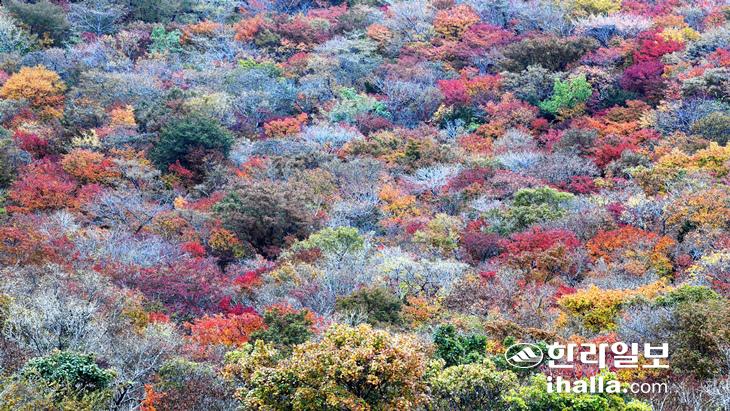 울긋불긋한 한라산 영실지역 단풍. 강희만 기자