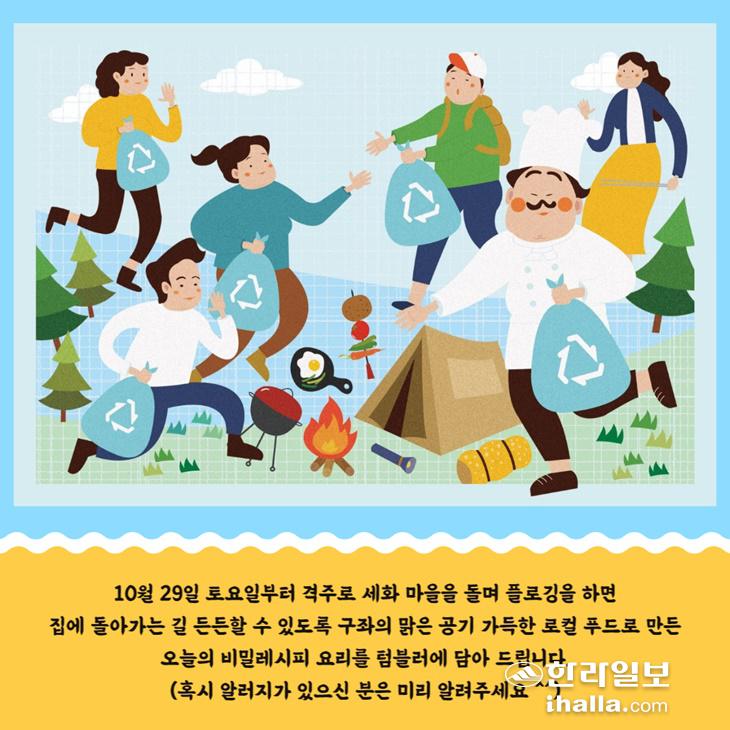 [한라일보] 제주 동쪽 마을을 걸으며 쓰레기를 수거하고 제철 재료로 만든 요리를 맛보며 환경에 대해 생각해보는 프로그램이 진행된다. 소모임 기반 문화예술단체 '공터'에서 펼치는 '엉뚱한 요리사들의 화끈한 플램핑'이다.