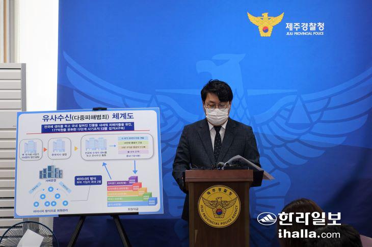 김항년 제주경찰청 반부패·경제범죄수사대장이 27일 제주경찰청에서 유사수신업체 사건 관련 브리핑을 하고 있다. 김도영기자