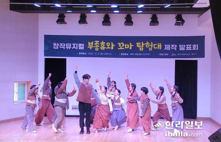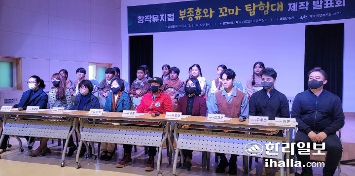 | 12월 3일 본 공연을 앞두고 21일 탑동해변공연장 다목적실에서 창작뮤지컬 '부종휴와 꼬마탐험대' 제작발표회가 열렸다.오은지기자 |